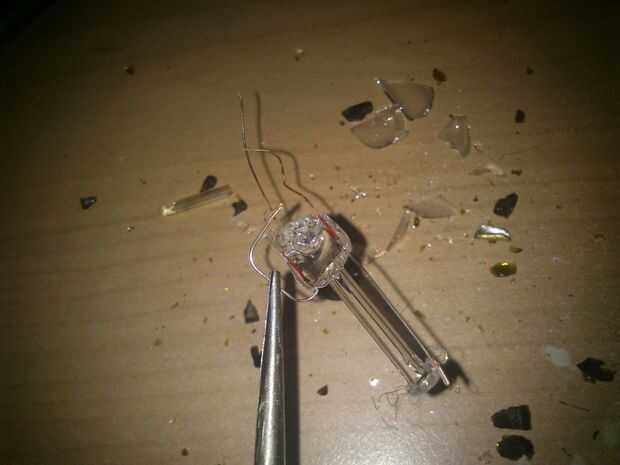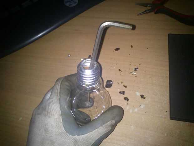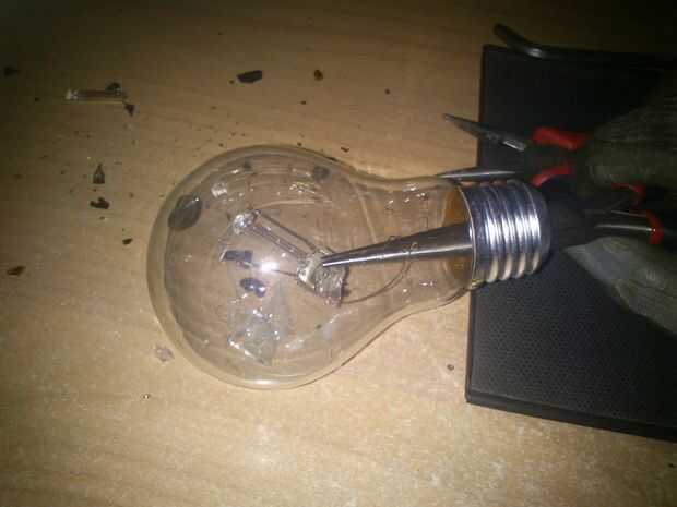 Tenemos que romper la parte inferior y el interior de la bombilla...