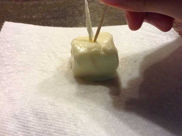 Obtener el palillo y pega la mecha en el centro de la mantequilla