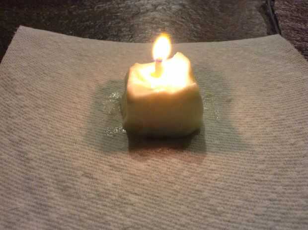 En este video tutorial voy a mostrar u hacer una vela de emergencia de un bloque de mantequillaEsta vela puede quemar más de 4 horas!Se necesita:Mantequilla saladaPapel higiénicoPaso 1: Se necesita un bloque de mantequillaUsar mantequilla saladaPaso