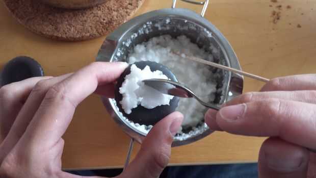 • Una vez que la cera se haya derretido mezclar bien con crayones negros.