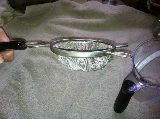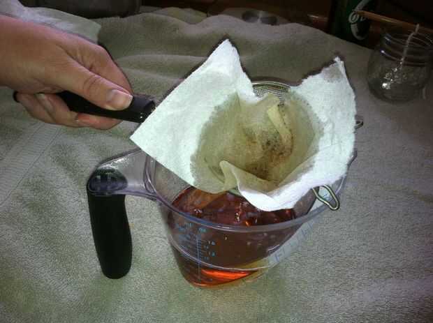 Una vez terminada la grasa al vapor, filtrar con un colador fino. Usé una toalla de papel y funcionó a la perfección.