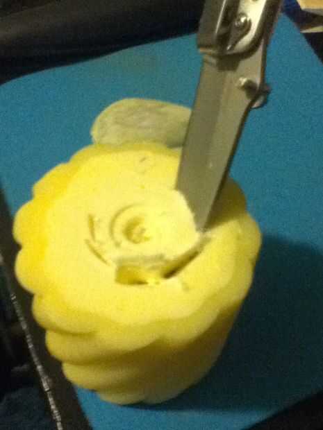 Teóricamente podría usar un encendedor y simplemente fundir un agujero en la parte inferior. Esto resultaría en un agujero mucho más agradable. Una barbacoa de antorcha encendedor probablemente trabajaría mejor. Si alguien hace un Comentario por favor y Dile cómo fue!