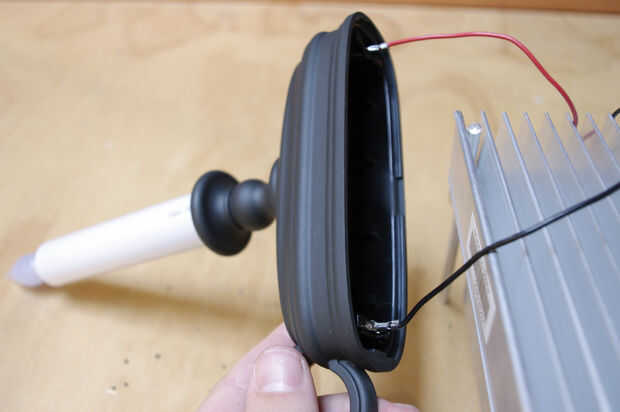 Conecte el cable rojo de la ensambladura peltier al borne positivo de la vela. Es el terminal que normalmente toca el pezón pequeño de la batería.