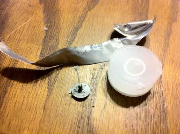 Quitar el metal de las luces de té y también retirar cuidadosamente el metal base y mecha y guardarlas para más adelante.