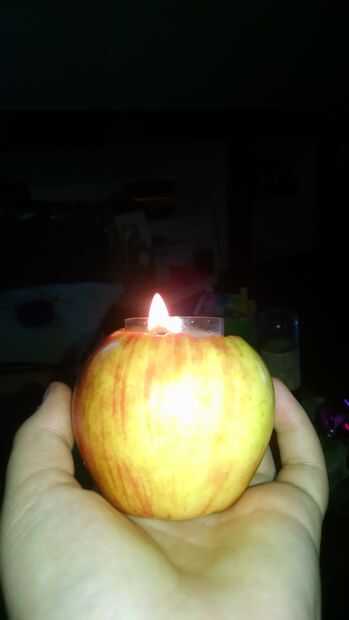esto es una vela que básicamente en una manzana y posiblemente podría (si hacerlo absolutamente perfección) flotan en el agua mientras que encendido