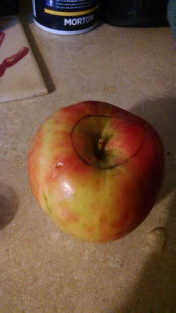básicamente tienes que poner la vela en la parte superior de la manzana y luego trazar la circunferencia de la vela (traza alrededor de la vela)