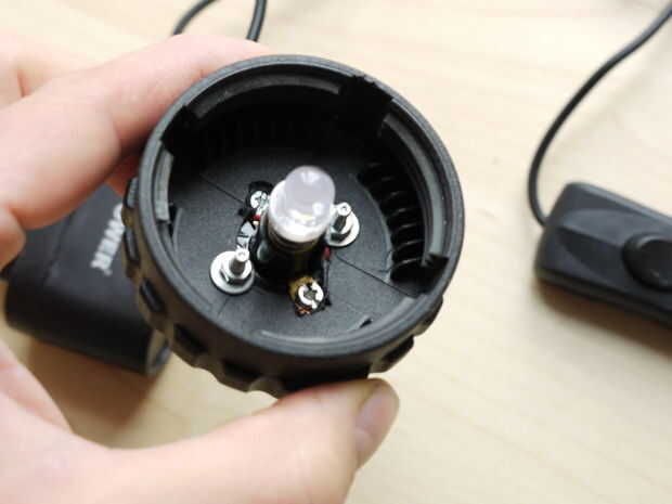 Cerrar el interruptor y poner el cargador en el Led de prueba.