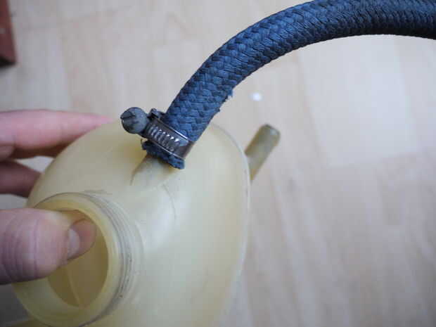 Fijarlo con la abrazadera de manguera usando la ranura srewdriver, no al plástico duro, de it´s.