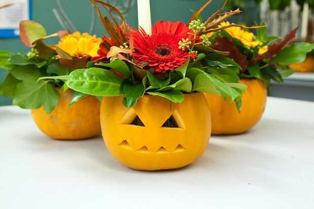 Comience cortando la parte superior de la calabaza, sacar con pala hacia fuera de las tripas y talla su cara! O dejarlo simple si te gusta :)
