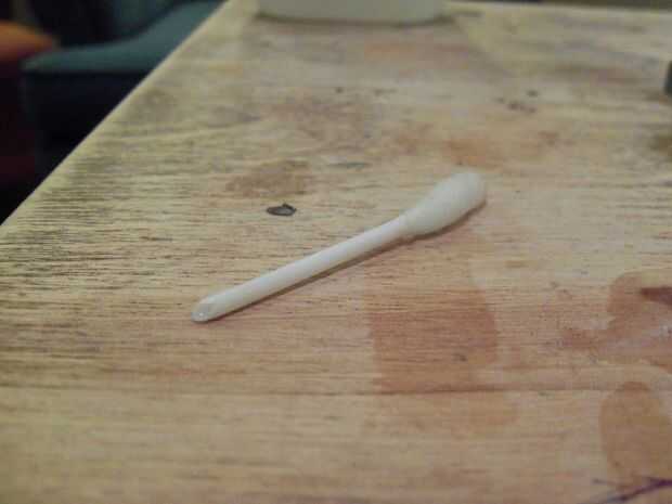 usé una que utiliza un hisopo de algodón con un palo de plástico hueco. A arrancado bola de algodón en la cubierta también puede ser utilizado. Si utiliza el hisopo, cortar el palo a la longitud de la carcasa para que el algodón sobresale el cuello. Debería verse como una bala blanca esponjosa cuando se hace.
