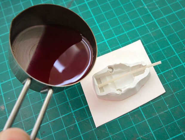 - Esto es donde ayuda la tarjeta de papel - le permite doblar con cuidado el molde para la fundición a la cera. Menear la cera en forma de Lego lanzar gratis manteniendo la mecha. Puede hacer varios moldes de un molde. Tengo por lo menos 5 de uno y va todavía!