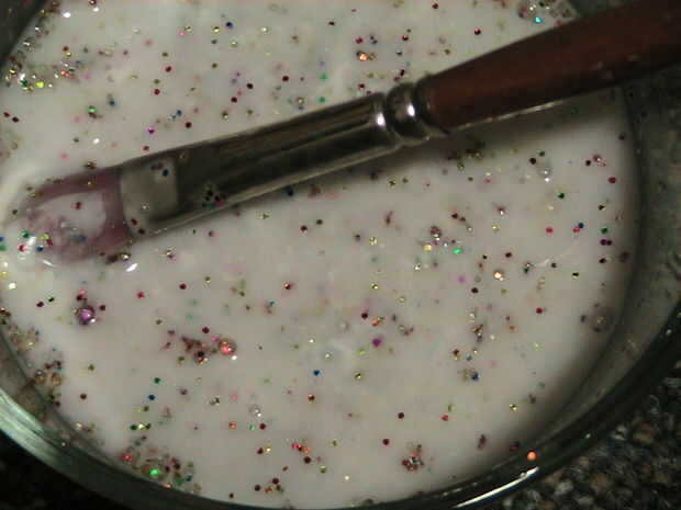 Añadir una cantidad considerable de pegamento y comenzar a mezclar con el pincel.