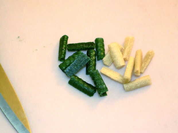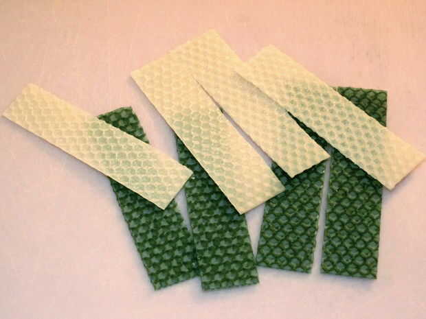 Para el pepino o aguacates piezas, necesita 1 pulgadas tiras de cera de abejas blanca y verde.