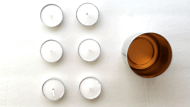 2. Quitar la cera de las luces de té y agregar al contenedor.