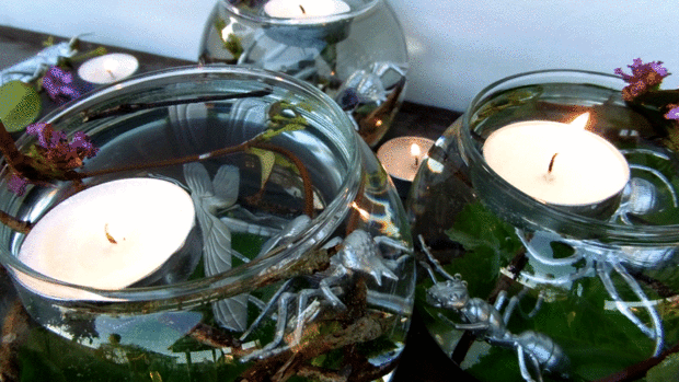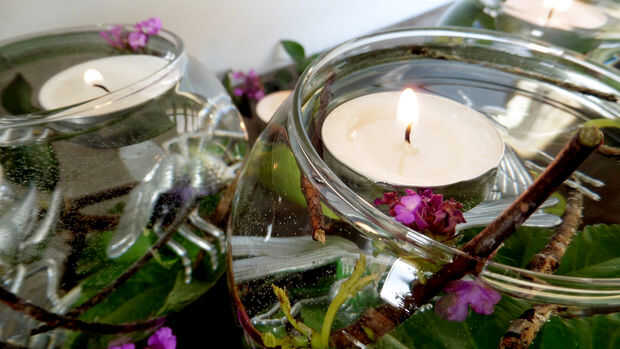 6. Suavemente Coloque una luz de té sobre la superficie del agua y luz. La vela debe flotar y deje un aroma agradable de citronela.