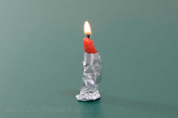 y una vela. Abrir su campana de bebé como de costumbre, pero en lugar de descartar la cáscara, exprímala alrededor de uno de tus mechas. Ahora tomar su aluminio enróllelo alrededor y aplanar la parte inferior para hacer un soporte. Ahora sus manos son libres de merienda en el queso.