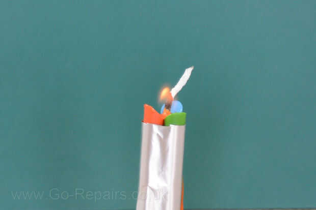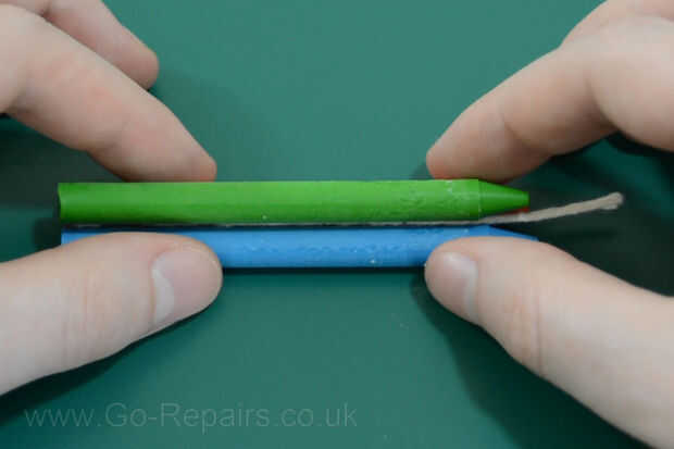 Esta vela está hecha de lápices de colores con la envoltura de papel eliminada. Sandwich la mecha entre tres lápices de colores, envolver en papel de aluminio y listo. Todos nuestros resultados con este tipo de vela demostraron para ser pobre. Iluminación un crayón con la envoltura de papel todavía sujeto resultó para ser un poco peligroso, pero hizo un buen fuego de arranque.