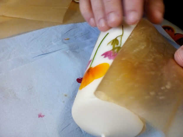 decorar fácilmente un soporte tarro o velas con flores secas.Paso 1: colocar flores secas Organizar y laminado secar flores y hojas. (Bolsas no requieren también hay una máquina de laminación). Tenga en cuenta la altura y la anchura del sostenedor de