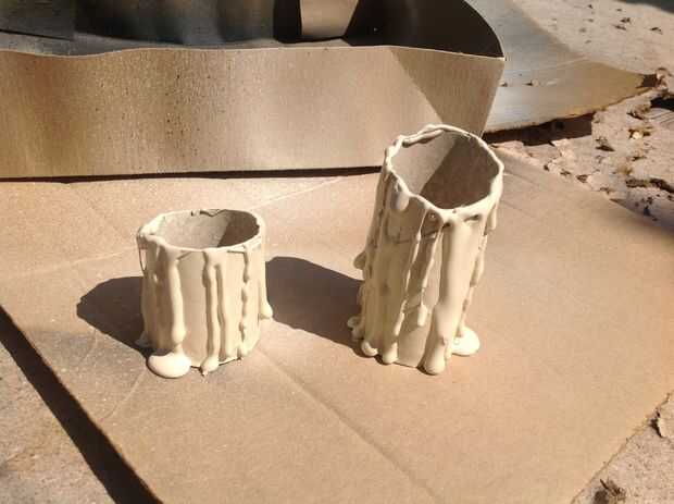 Una capa de pintura en aerosol se hace para que cuando se aplica la 2ª ronda de pegamento tiene temas bastante bien por debajo. Utilizando una pintura de spray mate o satinada en el color de la base de la vela, comienza rociando uniformemente y completamente, volviéndose la vela y llegar por debajo de los goteos, rincones y recovecos. Aquí estoy usando Touch de Rust-Oleum pintor 2 x Ultra cubierta pintura + cartilla de seda del satén/de la marfil. Es exagerada pero es lo que tenia en mano y cubre realmente bien. Deje que se seque completamente (véase pintura puede info. para los tiempos de espera).