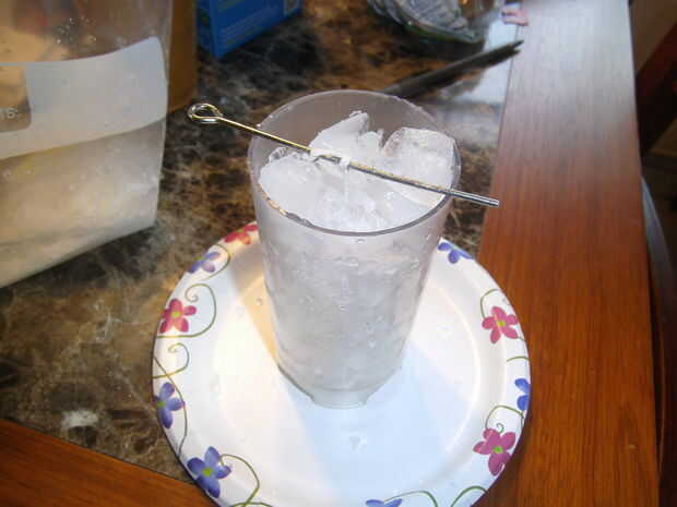 Como mencioné antes, manteniendo la mecha centrada y apretada es crucial para una vela ardiendo incluso. Rellene la parte superior. Recuerde que la cera derretirá el hielo como llueve a cántaros, pero no totalmente, como también empezará a solidificar alrededor de él.