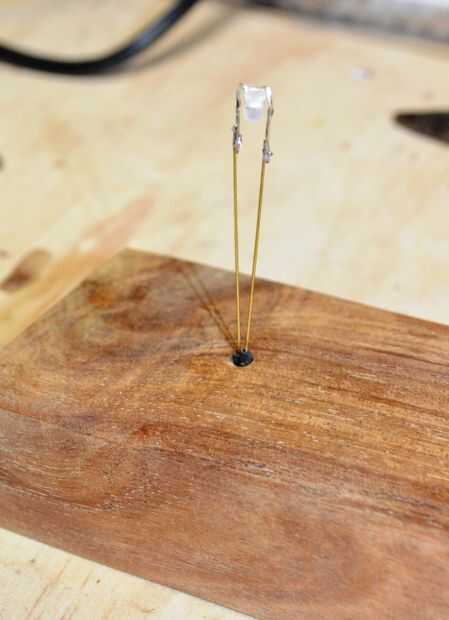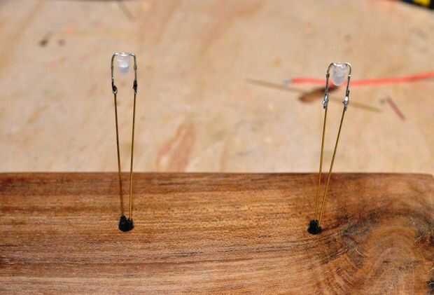 1. doble los cables de los LEDs para que el LED esté apuntando hacia abajo como se muestra