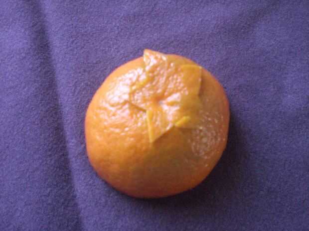 Paso 4: Cortar un agujero en el tallo no la mitad de la mandarina