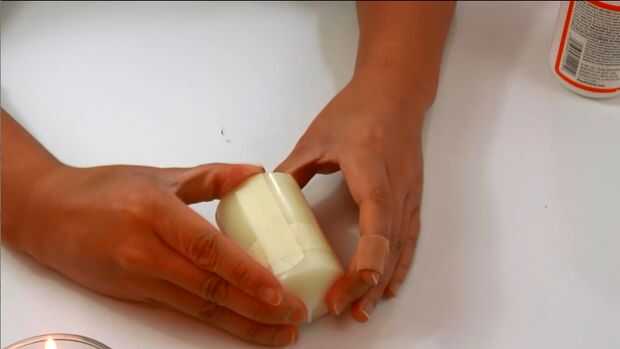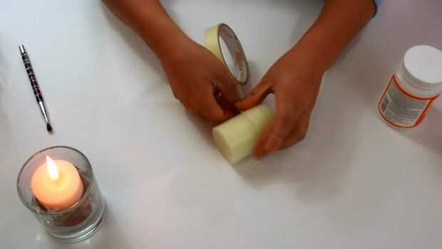 Aquí cinta la mayoría de la vela dejando alrededor de 25 por ciento que no aplicar demasiado brillo.