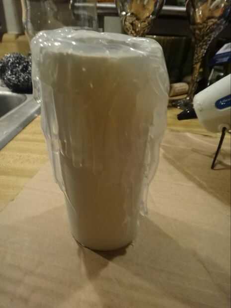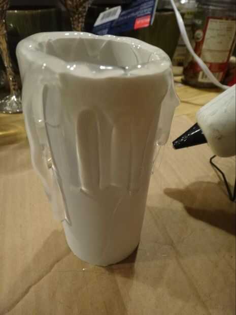 PRECAUCIÓN: cuando pone en la parte superior, trate de no entrar en el PVC, como entonces no podría caber su luz de té. Si usted consigue algunos por el interior (como en las fotos aquí), tendrás que eliminarlo. Sale bastante fácil, pero usted puede necesitar utilizar un cuchillo para cortarlo.
