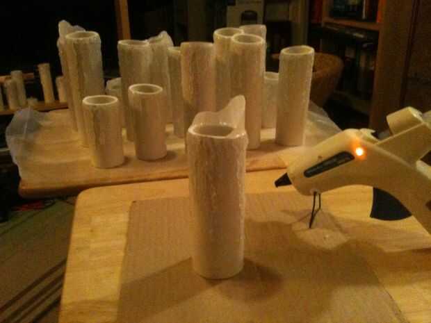 • Grupos: Antes de añadir la "cera", pegue tres piezas de PVC de diferentes tamaños para ir hacer una agrupación. Puede utilizar el pegamento o cemento de PVC para hacer esto.