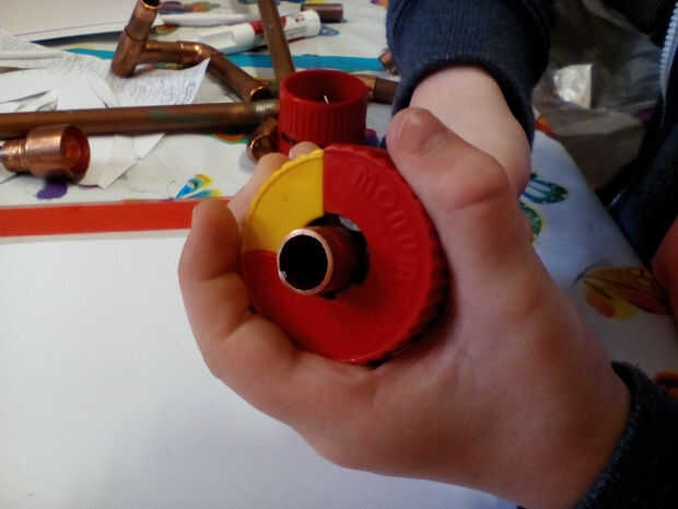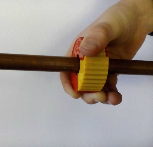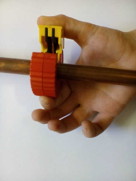 Corte de tubos usando un cortador de pipa es muy fácil. Usted simplemente Envuelva el cortatubos alrededor del tubo y giro redondo y redondo hasta que haya cortado el tubo! Los bordes no cortan y no es peligroso. Usted puede utilizar una sierra pero es mucho más difícil y los bordes será fuertes.