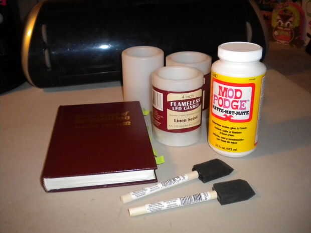 -3 velas sin llama (estos fueron comprados en el Dollar Tree y tomar AAA baterías que usted puede tener a mano, o usted también puede recoger en el Dollar Tree también)