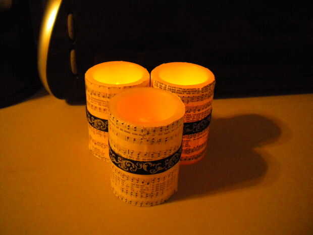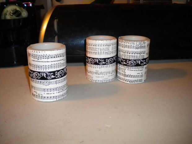 Ahora, puede embellecer la vela si deseas o dejar como está.  Quería añadir alguna cinta alrededor mío, así que tomó un corredor de cinta y funcionó sobre la cinta y luego simplemente había atado alrededor de las velas.