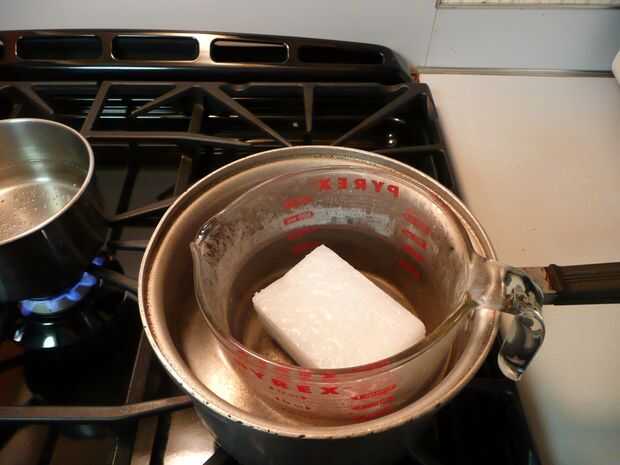 Simplemente llena tu olla con agua (aproximadamente 1/4 de la forma dependiendo del tamaño de la maceta) y establecer su taza en la olla de Pyrex. Coloque la cera en el Pyrex.