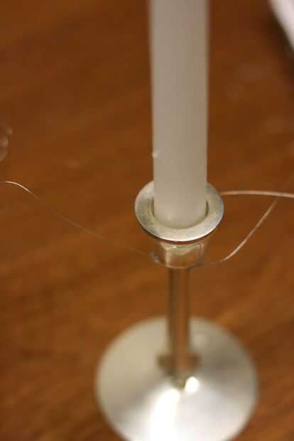 También probé esta variación con un sostenedor de vela pesada. Sin la cera manteniendo los cables en los lados opuestos tendrá tres cables para éste.