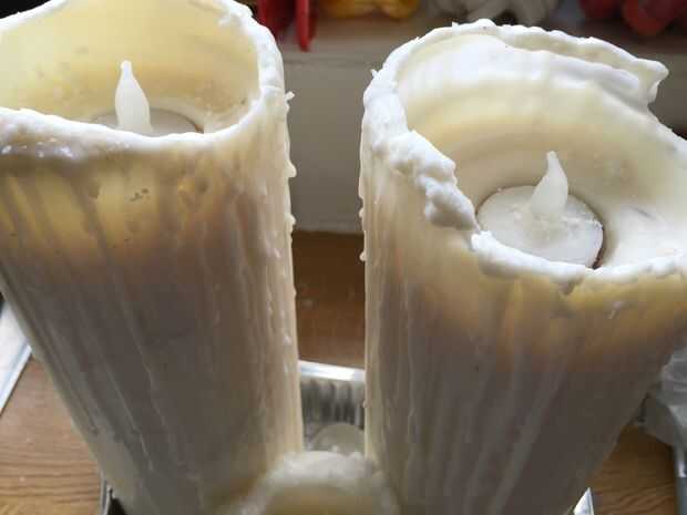 Las delgadas paredes de la vela derretida actuaría ahora a difundir la luz eléctrica de las velas imitación.