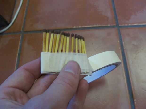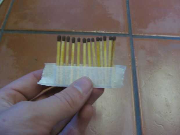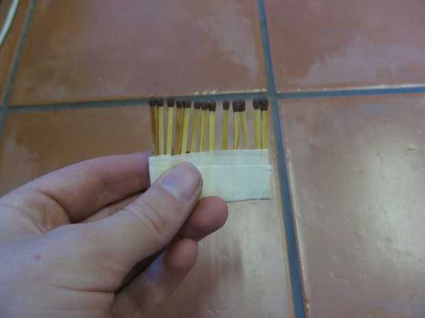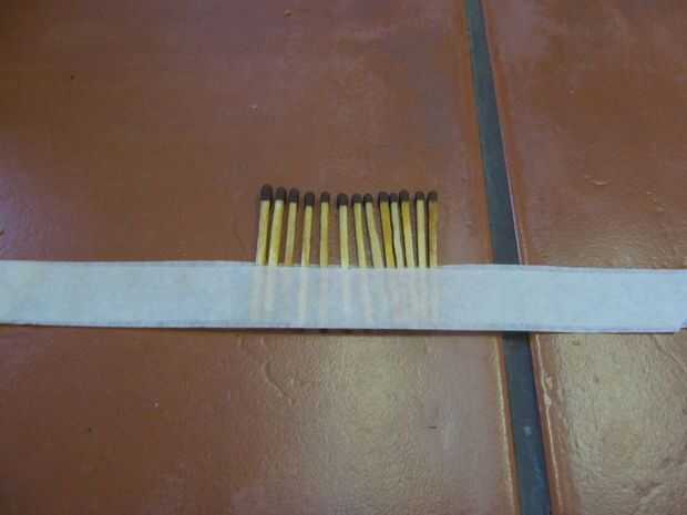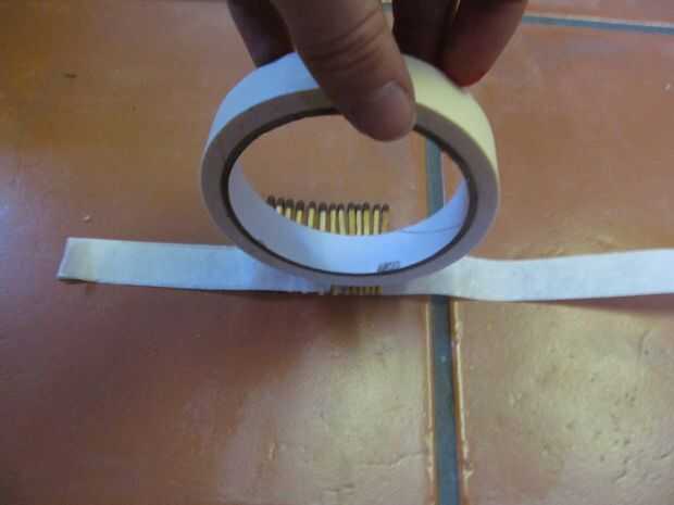 Coloque una tira de lado pegajoso de la cinta hacia abajo sobre los partidos, intercalando entre las dos cintas.