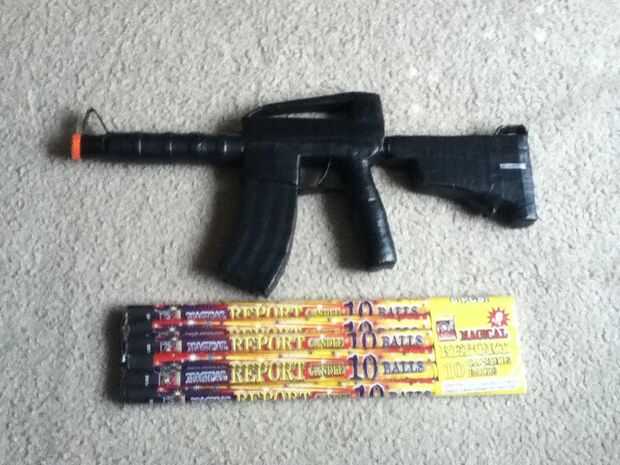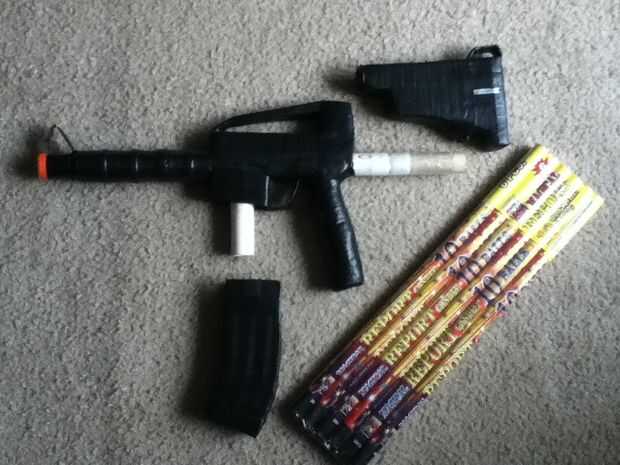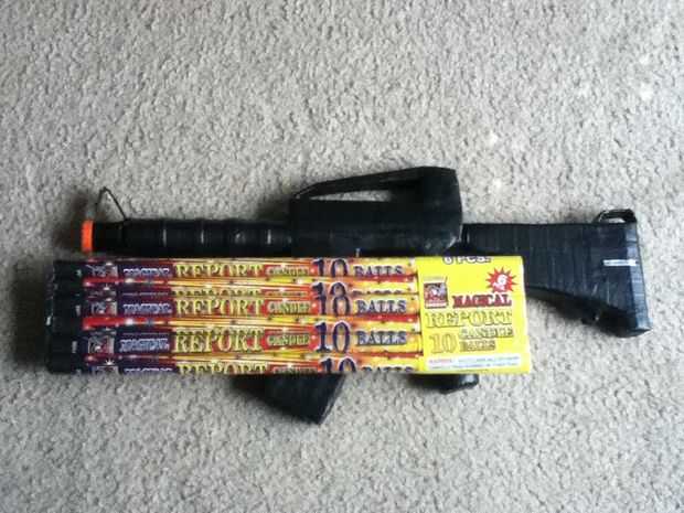 Esperemos que usted disfruta de estas fotos y si son capaces de construir esta de las fotos, por favor, reconocer que no soy responsable para cualquier problemas, accidentes, lesiones, muertes, problemas con la aplicación de la ley, o casos de mala INDIGESTIÓN causada por esta creación. Por favor, compruebe todas las leyes en su área con respecto a las armas de fuego, fuegos artificiales y explosivos y por favor, recuerde que el barril naranja es absolutamente obligatoria en los Estados Unidos. (Cualquier otra cosa, no sé). Esté por favor seguro con esto y nunca apunte éste a cualquier persona, cualquier otra cosa de la vida, propiedad privada/pública, aeroplanos o tu abuela. Gracias, por favor, recuerde que los fuegos artificiales son un asunto serio. ;)