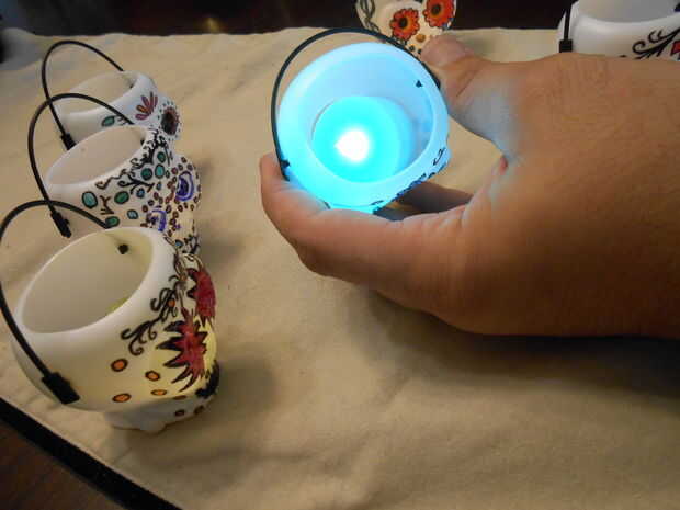 En este instructable usted aprenderá cómo hacer un peluche de calavera de azúcar con color cambiar LED ojos.HerramientasAlicates redondos de joyerosTijera/tijeras podadorasAgujas de coserMaterialesBambú o lana fieltro tela para las formas (no mucho e