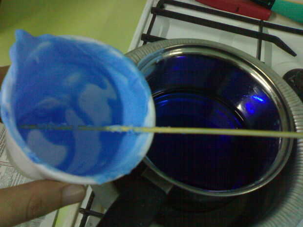 Cuando llegó el momento de verter, usé otra taza de papel (un vaso más grande) que cortó un poco el labio como un surtidor de agua. Mi copa vela molds1 del papel era vaso pequeño tamaño tazas, y yo tenía un montón de ellos, así que no quiero hacer un lío.