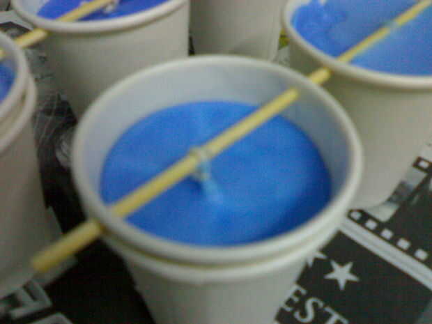 También sugiero que ya que la parte inferior de las tazas de papel toma un rato para refrescarse, pueden elevar toda la fila mediante la colocación de la 1ª y la última copa en otra taza de papel. Esto hace la fila entera elevarse del suelo y con el enfriamiento.