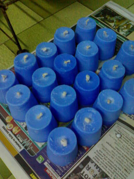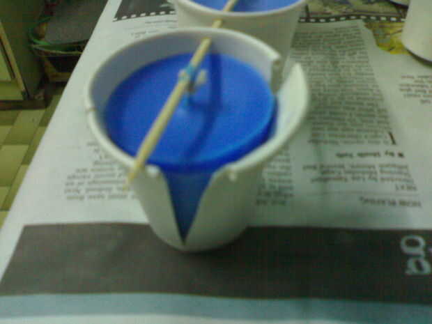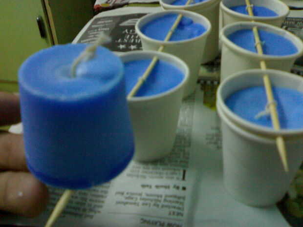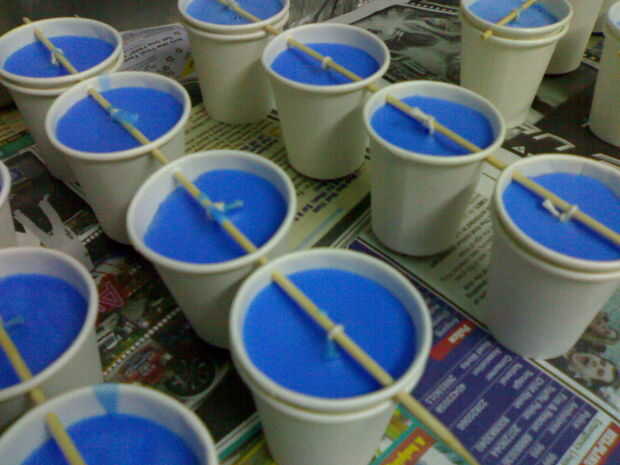 Cuando las velas son sólidas, sólo cuenta con un cuchillo o una cuchilla abajo la taza de papel (lo hice en 3 lugares) y la taza de papel se desprenderá de la vela (o la vela se desprenderá de la taza de papel, que uno es mejor escoger).
