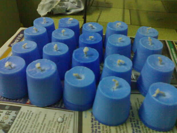 Lo que recomiendo es comprar un montón de vasos de papel y luego perforar los agujeros en ellos una sola vez, luego hacer la mecha etc. en otro momento. Te dejó con voluntad de ser vela molds1 del listo para usar. Luego escoge un fin de semana y derretir la cera, pour y todo listo.