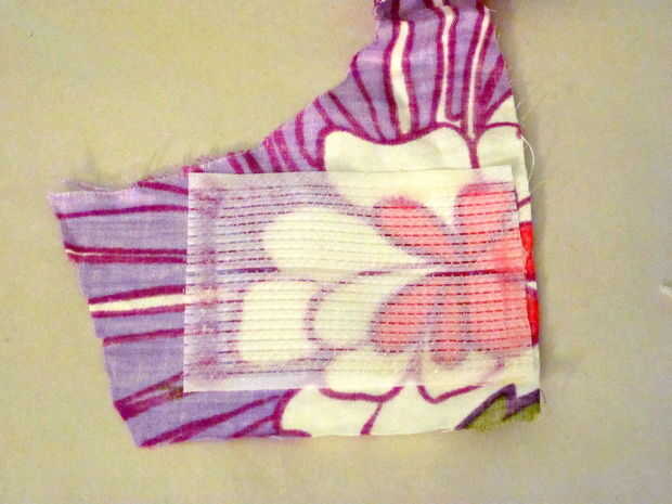 Pegué alrededor del borde de la cinta de velcro con una pistola de pegamento y luego había pegado a un trozo de tela. Una vez seco el pegamento, yo a recortar a la tela sobrante.