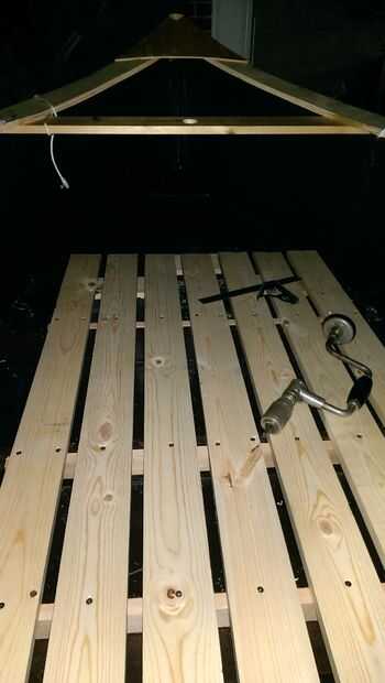 No confío en madera contrachapada de pulgadas de trimestre para mantener mi peso. Una cubierta extraíble de 1 x 4 permite que las vigas del barco a llevar esta carga. La cubierta es removible para hacer la embarcación más fácil de transportar. Para crear la cubierta, determinar cuánto tiempo y todo puede ser midiendo el interior del casco. Asegúrese de que no cubre el soporte inferior del mástil. Espacio de 1 x 4 separado media pulgada y vincularlos con dos 1 x 2 (corte 1 x 4 en 1 x 2 si es necesario). 1 x 2 debe colocarse en algún lugar para que engancharán en las vigas del casco, que evita que la cubierta estable.
