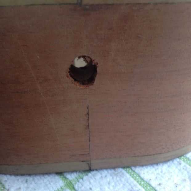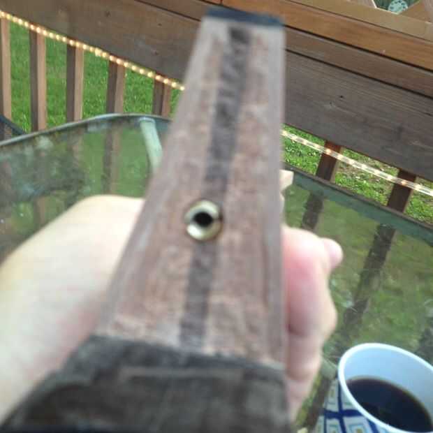 Usé un perno en cuello conjunta para sujetar del cuello al cuerpo. Después seca el conjunto he utilizado un inserto de latón perforado en el talón del cuello y un perno a través del cuerpo. Sin cola es necesario y hace una articulación muy estable.