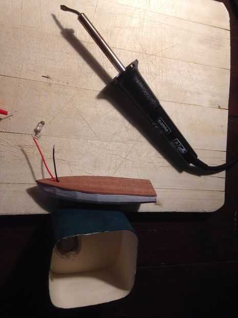 Het plaatje ik heb onder het bootje en een doosje gestopt waarop het bootje uiteindelijk wordt gelijmd.