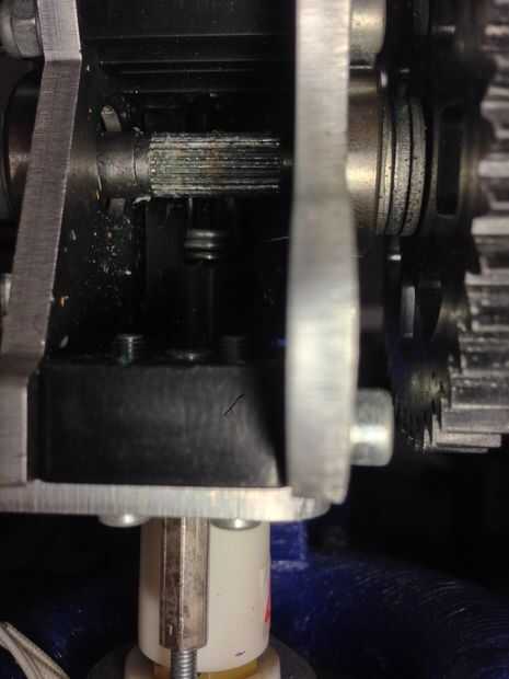 Después de que incruste el resorte en la base de la extrusora, tienes que volver a montar la extrusora. Tenga en cuenta que la altura del resorte debe ser justo debajo del engranaje que empuja el filamento hacia abajo.