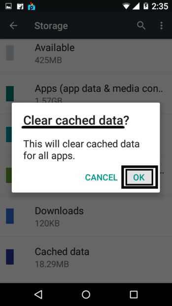 En primer lugar, abra la configuración de Desplazamiento hacia abajo y verás almacenamiento. Almacenamiento de información abierto y desplácese hacia abajo y verás Datos en caché. Ahora Pulse sobre datos almacenados en caché y luego golpe OK y serán borrar los datos almacenados en caché. Esto no borra tus fotos, música, fotos o cualquier otro archivo. Así que no dude y eliminarlo.