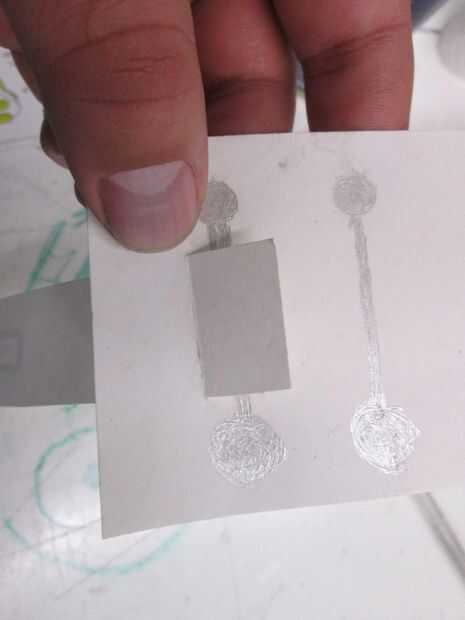 Debe hacer esto de una manera donde la tinta conductiva en la parte posterior de la ficha se conecta con la tinta conductiva en la parte frontal de la pieza donde se instalará los componentes del módulo.