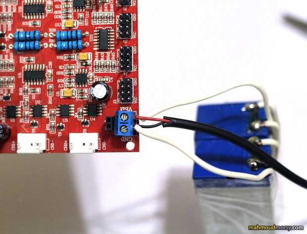 Poner el terminal negativo de la batería al terminal de entrada "GND" en el tablero.